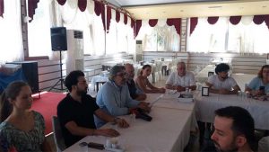 HGC Yöneticisi Gazeteci Mithat Kalaycıoğlu, Avrupa’dan gelen misafirlere, yıllar önce yazdığı kendi kitabı “Hatay Halk Bilimi” adlı yayınını hediye etti. -Selvi Günay-