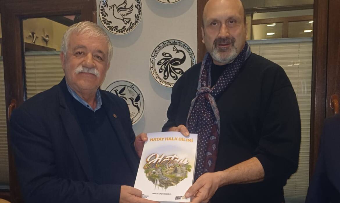 Antakyalı gazeteci ve halk bilimci Mithat Kalaycıoğlu, kaleme aldığı “Hatay Halk Bilimi” adlı eserini Küresel Gazeteciler Konseyi Başkanı Mehmet Ali Dim ile Hatay Valisi Mustafa Masatlı’nın danışmanı Prof. Dr. Levent Eraslan’a hediye etti.