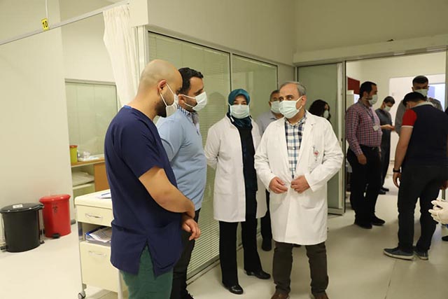 Hatay Eğitim Ve Araştırma Hastanesi Başhekim Vekili Dr. Mahmut Bayrakçıoğlu, beraberindeki heyetle birlikte hastanenin genel alanlarına ve sağlık hizmeti sunulan poliklinik alanlarına ziyaret gerçekleştirdi. Başhekim Vekili Dr. Mahmut Bayrakçıoğlu, beraberindeki heyetle birlikte, poliklinik alanlarında halka sunulan sağlık hizmetlerini yerinde inceleyerek, saha değerlendirmelerinde bulundu. Bayrakçıoğlu, yaşadığımız bu zor süreçte görevlerini layıkıyla yerine getirmeye çalışan sağlık çalışanlarına, gösterdikleri gayretli ve özverili çalışmalarından dolayı teşekkür ederek alanlardan ayrıldı.