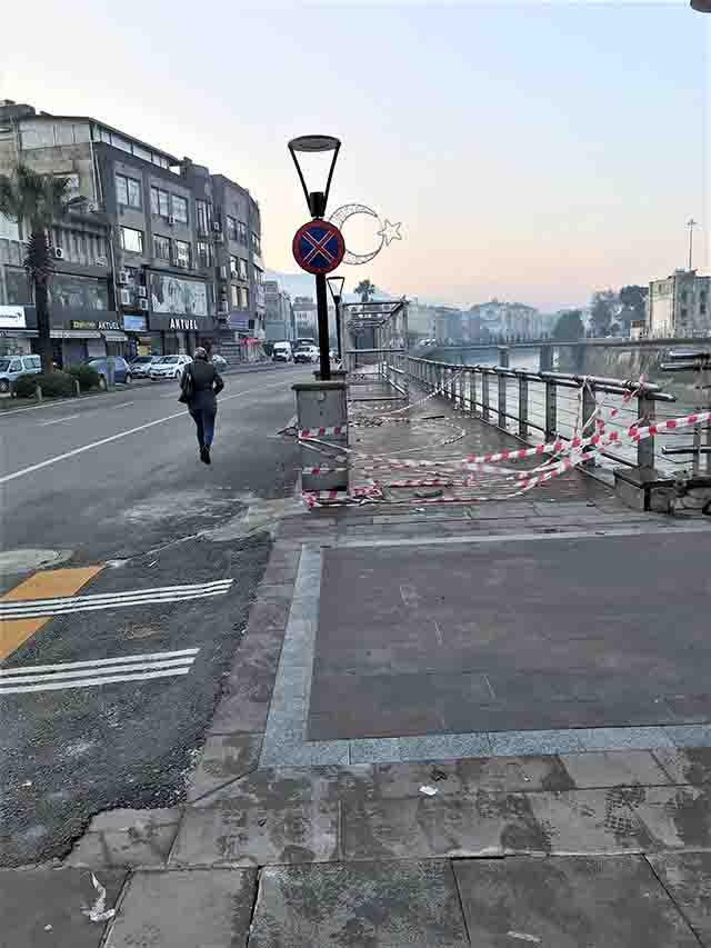 Antakya Belediyesi tarafından Kurtuluş Caddesi’nde sürdürülen restorasyon çalışmaları kapsamında, Sarımiye Cami hemen yanı başında devam eden uygulama noktasında yaşanan kaldırım işgalinin son örneği, Büyükşehir Belediyesi’nin Asi Nehri kenarındaki yaya yolunda sürdürdüğü otobüs durağı monte çalışmaları sırasında kendini tekrar ediyor.