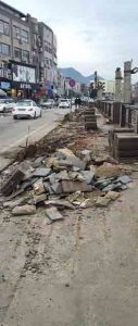 Asi Nehri’nin, Antakya kent merkezinde, yeraltı çarşısına bakan kısmında uzanan kaldırımında yenileme çalışması yapan belediye ekiplerinin, çalışmadan arta kalan moloz yığınlarını olduğu gibi bırakması yüzünden kullanım dışı kalan alan, yayaları araç trafiği ile karşı karşıya bıraktı.