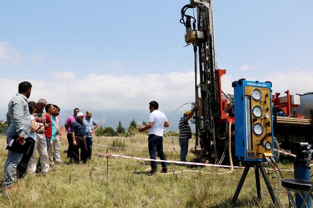 pressiyometre deneyi ve İskenderun Bayındırlık Zemin Laboratuvarı personeli tarafından yapılan kum konisi deneyi ilgiyle takip edildi.