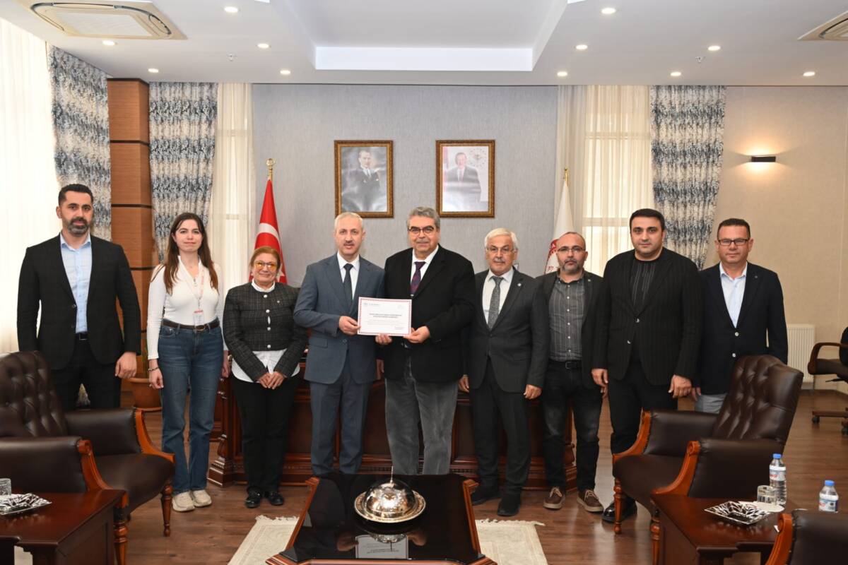 Heyet, belgeyi Rektör Veysel Eren’e takdim etti. Törene ayrıca Rektör Yardımcıları Mehmet Turan ve İbrahim Halil Çerçi ile Sağlık Kültür ve Spor Daire Başkanı Mustafa Tiyekli de katıldı.
