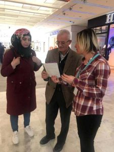 Antakya’da AVM’de, özellikle kadınlara, kanserle mücadele ile ilgili afiş ve broşür dağıtıldı.