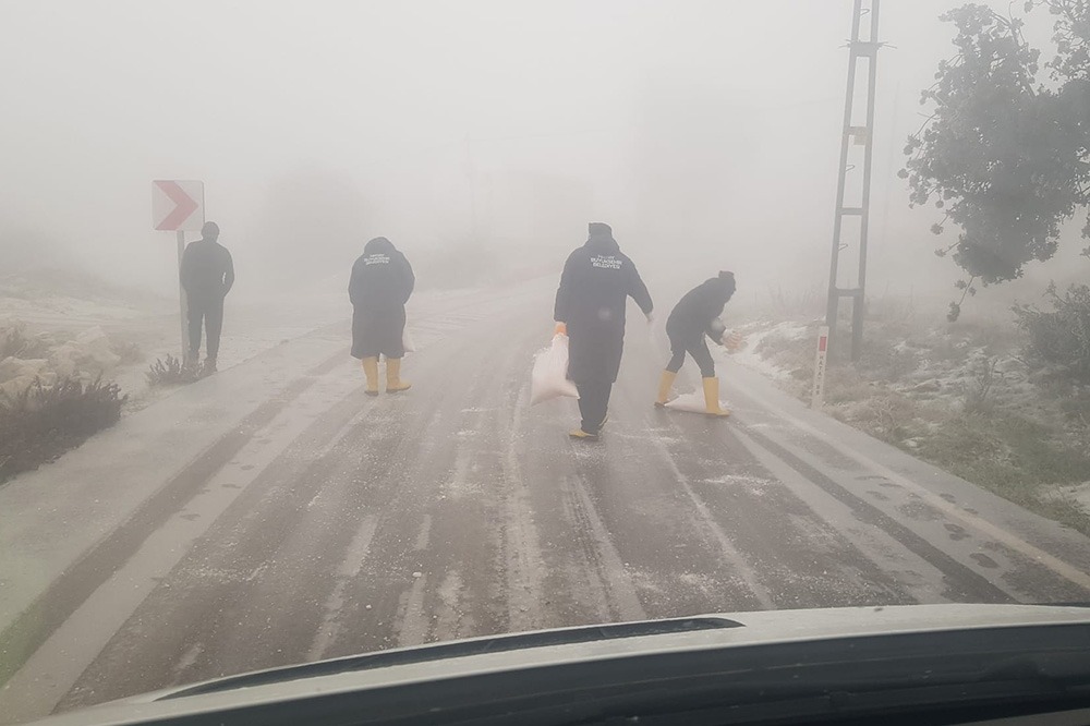 Hatay genelinde etkili olan kar yağışı ve buzlanmaya karşı Hatay Büyükşehir Belediyesi (HBB) ekipleri, gece boyunca sahada kalarak ulaşımın aksamaması ve vatandaşların güvenliği için yoğun mesai harcadı.