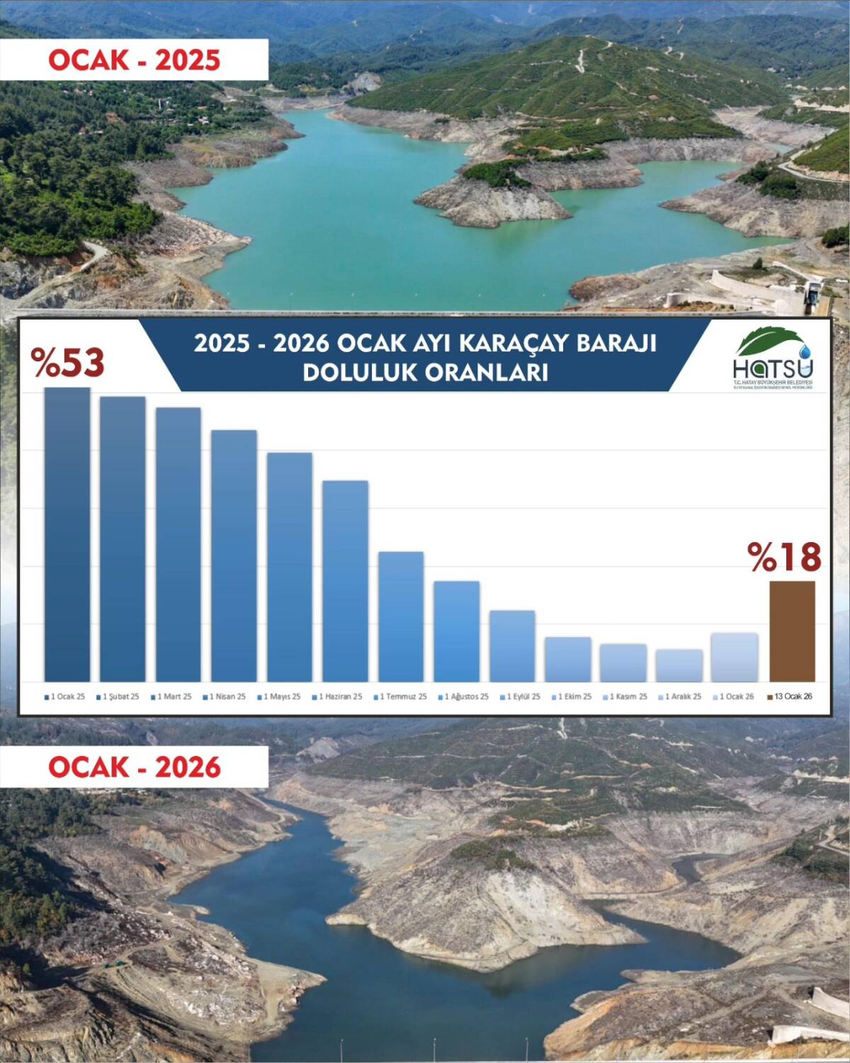 HATSU Genel Müdürlüğü’nün verilerine göre, bu artış olumlu bir gelişme olarak değerlendirilse de kuraklık tehlikesi sürüyor. Geçtiğimiz yılın ocak ayında Karaçay Barajı’ndaki doluluk oranının yüzde 53 olduğu hatırlatılırken, mevcut su seviyesinin geçen yılın aynı dönemine göre yaklaşık yüzde 35 daha düşük olduğu belirtildi.