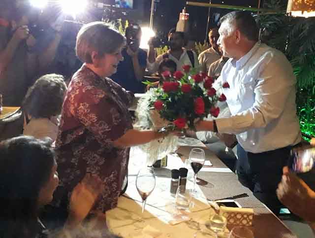 Hatay Mutfağı’nın tanıtımı amacıyla Çarşamba günü Adana’da gerçekleşen etkinlikte, sürpriz bir gelişme yaşandı. Adana Büyükşehir Belediye Başkanı Zeydan Karalar ile eşi Nuray Karalar, evlilikte 38.yıldönümü kutlamasını burada gerçekleştirdi. Mersin BŞB Başkanı Vahap Seçer ile Hatay BŞB Başkanı Lütfü Savaş ile eşleri, Karalar çiftini tebrik edip, mutluluklarının devamını diledi. -Cemil Yıldız-