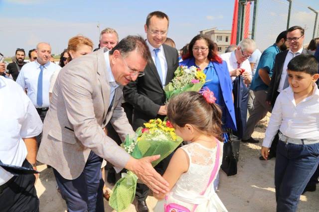 harcadı ve 1 milyon 200 bin TL katkı sağlandı. Tüm Stuttgart ve Aalen halkına canı gönülden teşekkür ediyorum. Okulumuz için bize arazi veren Reyhanlı Belediyesi’ne de çok teşekkür ediyorum. Belediyeler anne şefkatiyle bu işe el attılar. Biz biliyoruz ki kalem tutan eller silah tutan ellerden daha kıymetlidir. Kalem tutan ellere destek verdikleri için Aalen Belediye Başkanı’na ve beraberindeki heyete teşekkür ediyorum. Farklı düşüncelere, dinlere sahibiz ama hepimizin ortak paydası insan sevgisidir. Savaşı durduracak olan bu tip spor alanlarıdır. Spor alanları çocuklar için çok önemli çünkü sağlıklı beyin sağlıklı vücutta bulunur. Bu nedenle sağlıklı bireylerde fitne fesat olmaz. Spor sahalarımız çocuklarımıza hayırlı uğurlu olsun.”