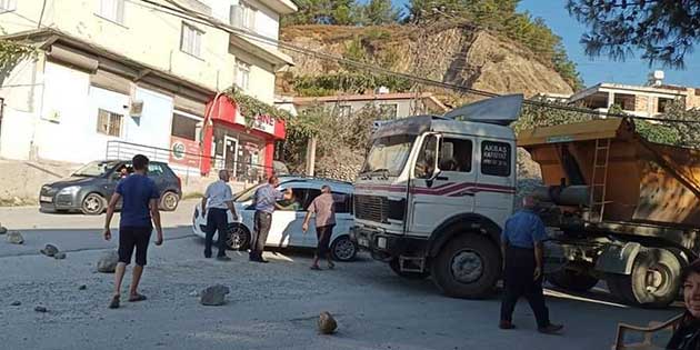 Halk, kamyonların, bozuk yolda toz ve çevre kirliliğine neden olması üzerine yolu trafiğe kapattı