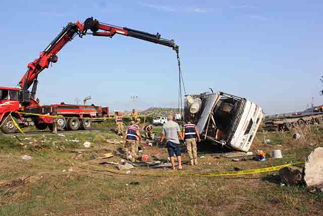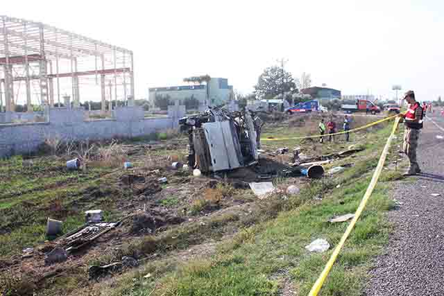 Erzin ilçesinde, tarım işçilerini taşıyan minibüs ile demir yüklü TIR çarpıştı. Katliam gibi kazada, 1 kişi öldü, 26 kişi yaralandı. Hacı Kartal’ın kullandığı 01 ABT 581 plakalı, narenciye işçilerini taşıyan minibüs, Erzin-Osmaniye karayolunda, Halit Topal’ın kontrolündeki 31 PA 838 plakalı, inşaat demiri yüklü TIR’la çarpıştı. Kazada 27 kişi yaralandı. Ağır yaralı Adile Bahçe kurtarılamadı ve öldü. Kaza sonrası, kaza bölgesi, polis ekipleri ve ambulanslarla dolup taştı. -Cemil Yıldız-