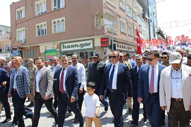 önünde toplanan kalabalık grup, başta kurum amirleri olmak üzere, kortej halinde yürüyerek 11 Mayıs Şehitler Anıtı’na vardı. Burada saygı duruşu, İstiklal Marşı ve Kuran-ı Kerim okundu. İlçe Müftüsü Murat Akçay tarafından dualar okunarak, Şehitlik bahçesine karanfiller bırakıldı. Cumartesi akşamı da, teravih namazına müteakip, Şehitlerimizin ruhlarına ilçedeki tüm camilerde Mevlid-İ Şerif okundu. -Cemil Yıldız-