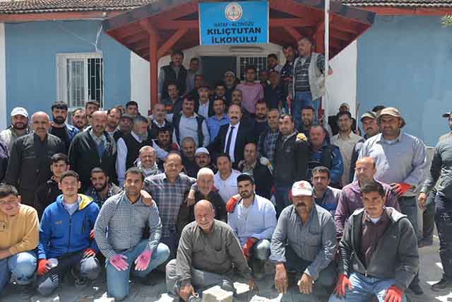 Altınözü Kaymakamı Bülent Uygur’un girişim ve koordinesi ile Kılıçtutan halkı el ele verdi, imece usulü ile okul bahçesine parke taşı döşedi. Altınözü ilçesine bağlı Kılıçtutan İlkokulu tadilatı imece usulüyle yapılıyor.
