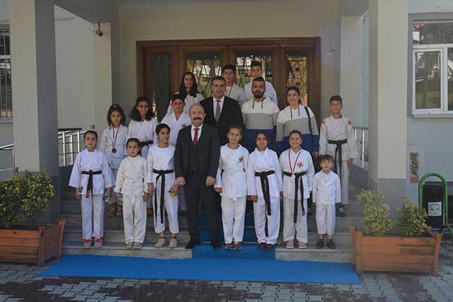 Altınözü Kaymakamı Bülent Uygur, 5 madalya ile dönen karate takımını kutladı.