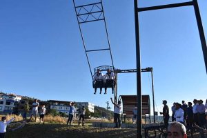 Dev salıncağın ilk binicileri, Kaymakam Bülent Uygur ve Altınözü Belediye Başkanı Rıfat Sarı oldu.