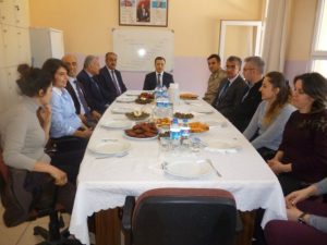 Ziyaret esnasında okul müdüründen okulun genel durumu ve ihtiyaçları hakkında bilgiler alan Müdür ve Kaymakam, öğretmenlerle ve öğrencilerle de sohbet ederek isteklerini dinledi. Okulun bölümlerini de gezen Kaymakam Şengök ile İlçe Müdürü Gülistan; idarecilere, öğretmenlere ve öğrencilere başarı diledi.