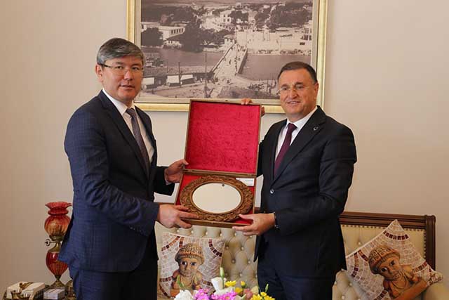 Kazakistan’ın Türkiye Büyükelçisi Abzal Saparbekuly ve beraberindeki heyet, Hatay Büyükşehir Belediye (HBB) Başkanı Doç. Dr. Lütfü Savaş’ı makamında ziyarete etti.