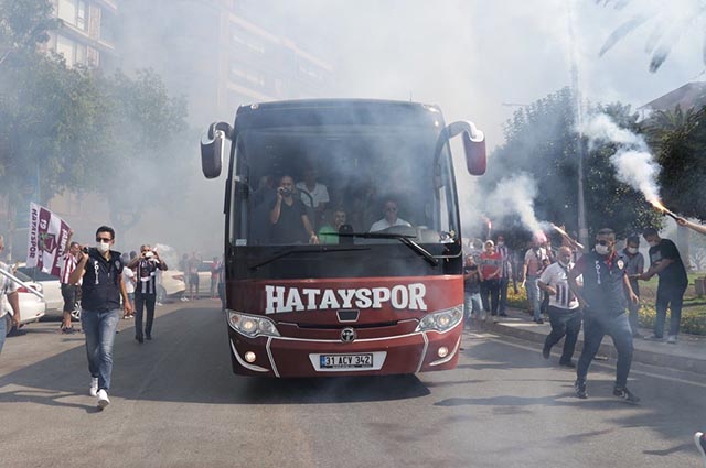 Hatayspor’un, uzatma dakikalarında attığı golle 1-0 kazandığı Keçiörengücü maçı öncesinde, Bordo-Beyazlı taraftarların futbolcuları motive eden girişimleri oldu. Cumartesi akşamı takımın kamp yaptığı Harbiye’de kalınan otele giden ve futbolcuları alkışlayan taraftarlar, maç günü takım kafilesini de stada gelirken meşaleli gösterilerle karşıladı. Kafileyi taşıyan otobüsün stadyuma yaklaştığı sırada, yüzlerce Bordo-Beyazlı sevgi gösterilerinde bulundu.
