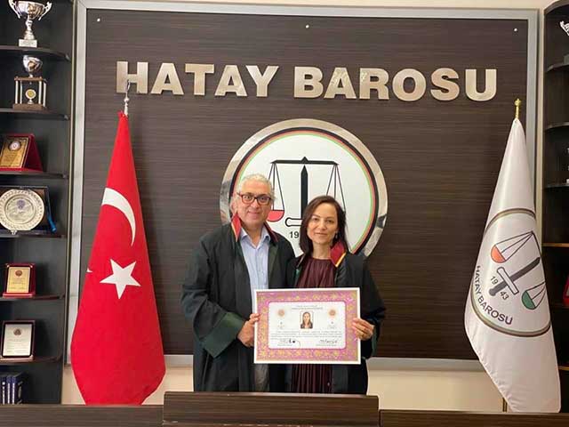 Evliliğinden bu yana eşiyle aynı diplomaya sahip olma ve onunla birlikte çalışma arzusunu yerine getirerek, 20 yıl sonra Hukuk Fakültesinden mezun olan, ardından da Antakya Adliyesi’ndeki stajyerliğini tamamlayan Pınar Hayzaran, Hatay Barosu’nun yeni üyesi oldu.