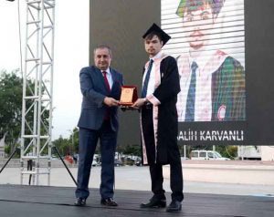 Yapılan açılış konuşmalarının ardından dönem birincisi Salih Karvanlı, diplomasını Hatay Vali Yardımcısı Aydın Tetikoğlu’ndan alırken, dönem levhasını mezuniyet kütüğüne Rektör Prof. Dr. Hasan Kaya ile birlikte çaktı.