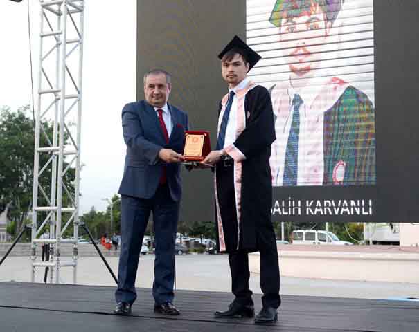 Yapılan açılış konuşmalarının ardından dönem birincisi Salih Karvanlı, diplomasını Hatay Vali Yardımcısı Aydın Tetikoğlu’ndan alırken, dönem levhasını mezuniyet kütüğüne Rektör Prof. Dr. Hasan Kaya ile birlikte çaktı.