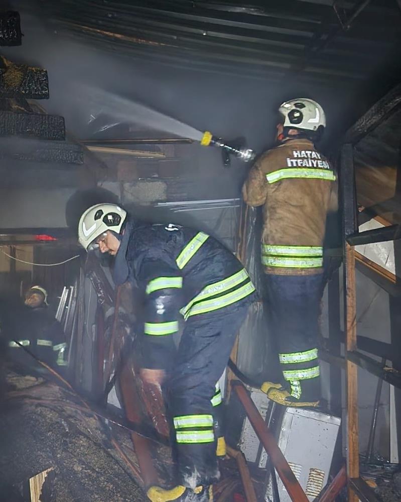 Hatay’ın Antakya ilçesi Haraparası Mahallesi’nde bir kereste imalathanesinde çıkan yangın,