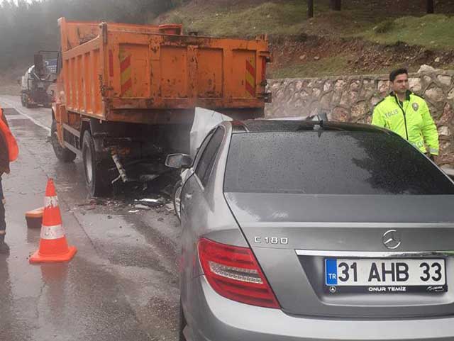 Antakya-Belen yolunda, dün Kıcı mevkiinde aynı yönde iki kaza yaşandı. Beton yüklü bir mikser devrilirken, Antakya-İskenderun yolu bir süre trafiğe kapandı. Yaşanan kazada ölü yok, ancak hafif bir yaralı var. Mikserin caddeye savrulmasıyla yaşanan kazanın hemen arkasından, aynı yerde ve aynı yönde meydana gelen bir başka kazada, otomobil, önündeki damperli kamyona arkadan çarptı, otomobilde büyük hasar oluştu. İki kaza dolayısıyla kapanan Antakya-Belen yolu, kısa süre içinde trafiğe yeniden açıldı. -Cemil Yıldız-