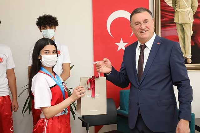 Hatay Büyükşehir Belediyespor’un kick boks sporcuları, 15 ülkeden 1637 sporcunun katıldığı müsabakalarda 3 Avrupa Kupası Şampiyonluğu yanı sıra 3 altın, 4 gümüş ve 1 bronz madalya kazandı. Başarılı sporcuları makamında kabul eden, Hatay Büyükşehir Belediye Başkanı Lütfü Savaş, başarılı sporcuları tebrik etti ve şu paylaşımı yaptı: