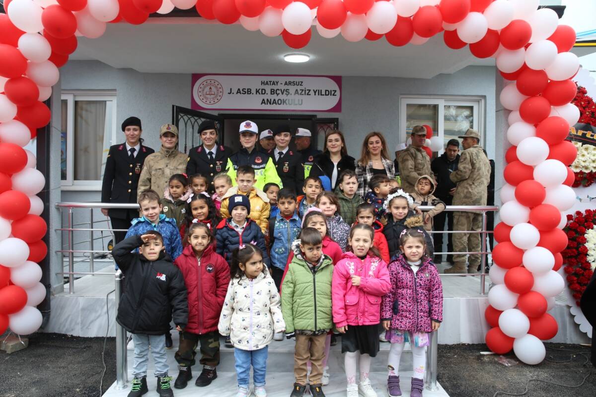 Hatay’ın Arsuz ilçesinde, geçtiğimiz yıl 10 Şubat’ta kalp krizi nedeniyle hayatını kaybeden Jandarma Astsubay Kıdemli Başçavuş Aziz Yıldız’ın anısına yaptırılan anaokulu, ölümünün birinci yıl dönümünde düzenlenen törenle açıldı. Kışla Mahallesi’nde inşa edilen 2 derslikli okul, İlçe Jandarma Komutanlığı ve hayırseverlerin destekleriyle hayata geçirildi.