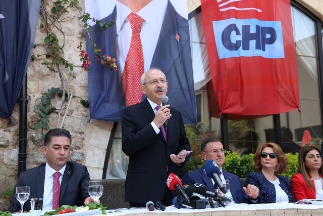 Hatay gibi barışın, kardeşliğin egemen olduğu bir kentte olduğu için mutluluğunu ifade eden Kılıçdaroğlu, “Sınırdaki olaylarında biteceğine inanıyoruz. Bugün kimyasal silahlı saldırı haberiyle uyandık. Kim olursa olsun kimyasal silah kullanmak insanlık suçudur. Masum çocukları ve tabiatı hiç kimsenin yok etmeye hakkı yoktur. Bölgeyi daha kritik bir savaşın içine sokulmasını asla doğru bulmuyoruz. Akan kan, o bölgede yaşayan farklı mezheplere sahip Müslümanların kanıdır. Amerika ve Rusya devletlerinin karşılıklı güç gösterileri oluyor. Bu güç gösterilerini bir yana bırakıp kardeşlik ve barış duyguları içerisinde yaşamayı öğrenmeliyiz. Ekonomi de Türkiye’miz bir dönem bölgenin yıldızıydı. İş adamlarımız Suriye’ye yatırımlar yapardı. En büyük tır filosuna sahip kentlerden birisi Hatay. Şimdi ne oldu? Sınırdaki sorunlar biter ve iş dünyamızın, ihracatçının önünü açarsak emin olun iş adamlarımız çok büyük başarılara imza atacaktır. Türkiye’nin kendi demokratik gücünü göstermesi lazım” dedi.