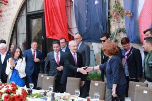 Hatay Büyükşehir Belediye Başkanı Doç. Dr. Lütfü Savaş ve eşi Prof. Dr. Nazan Savaş ev sahipliğinde gerçekleşen toplantıda, Kılıçdaroğlu, savaştan yana olmadıklarını, sınırdaki sorunların biran önce bitmesi ve Hatay’ın ticari yaşamının canlanmasını istediklerini vurguladı.