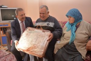 Antakya Belediye Başkanı İsmail Kimyeci, ‘Evde Temizlik ve Evde Bakım Hizmeti’ alan 65 yaş üzeri yaşlı vatandaşları evlerinde ziyaret etmeye devam ediyor. Kimyeci, ziyaret ettiği yaşlılara, yaklaşan kış aylarında kullanmaları amacıyla ayrıca battaniye de hediye ediyor.