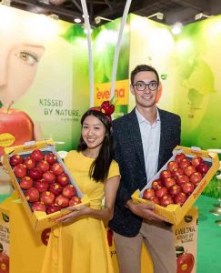 Hong Kong Başkonsolosu Peyami Kalyoncu ve Hong Kong Ticaret Ataşesi Merve Yılmazcan, Fuar’ın ilk günü katılımcı şirketlere destek verirken, Akdeniz Yaş Meyve Sebze İhracatçı Birlikleri