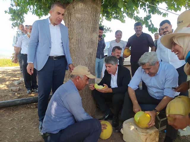 Aynı saatlerde yine Kırıkhan’a giden ve Hatay Tabiatı Koruma Derneği’nin konuğu olan Hatay Büyükşehir Belediye Başkanı Lütfü Savaş da girdiği tarlada Kırıkhan kavunu kopardı. Başkan Savaş, Kırıkhan kavunuyla ilgili olarak, “Program dönüşü, Yalangoz Köyü çiftçilerinden, kavun yetiştiricisi Ahmet Aymaz ve ailesi ziyaret edilerek, işlerinde kolaylık diledik” paylaşımı yaptı. -Cemil Yıldız-