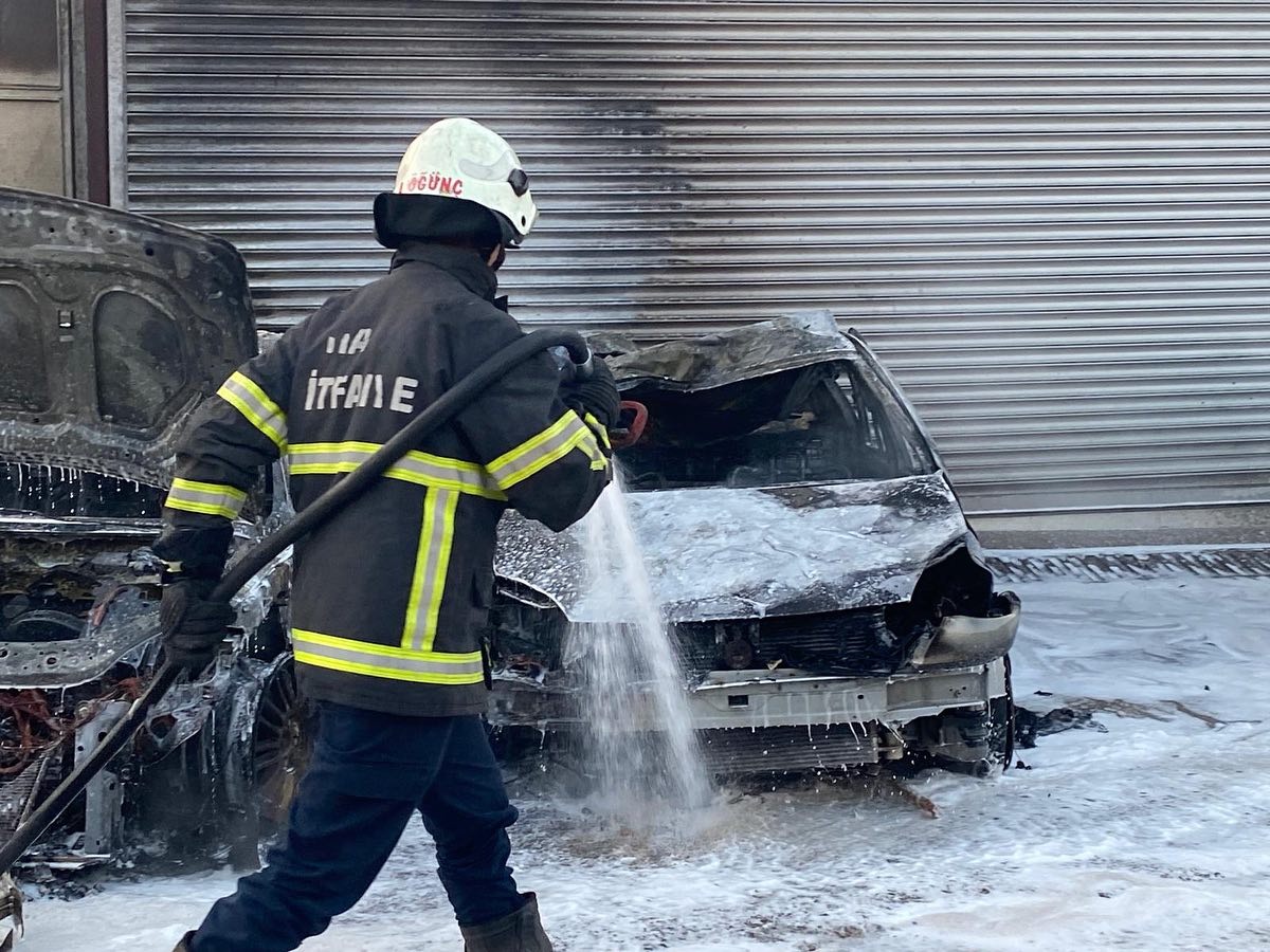 Kırıkhan yeni sanayi sitesinde çıkan yangında 5 araç tamamen yanıp kül oldu. Yangın dün sabah erken saatlerde yaşandı. Yetkili birimlerin verdiği bilgi şöyle: