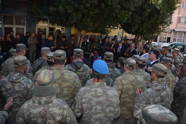 Kırıkhan Kaymakamı Zafer Karamehmetoğlu, Belediye Başkanı Ayhan Yavuz, 1. Hudut Tabur Komutanı Piyade Binbaşı Hakan Çınar, İlçe Emniyet Müdürü Hasan Kılıç, Kırıkhan’da konuşlanan Mehmetçikleri ziyaret ederken, Şehitler ve Bahar Kalkanı’nda mücadele veren diğer Mehmetçikler için kurban kesilip dualar okundu. Ziyarette ortak bir açıklamada bulunan Kaymakam Karamehmetoğlu ve Başkan Yavuz, “Öncelikle, Şehitlerimize Allah’tan rahmet, Gazilerimize acil şifalar dileriz. Rabbim, kahraman ordumuzu her daim muzaffer eylesin. Dualarımızı gönderiyoruz. Kahraman Ordumuz ve Aziz Milletimiz, her zaman çok güçlü ordu ve çok güçlü bir millettir. Bahar Kalkanı Harekâtı’nda mücadele eden Mehmetçiklerimizin, millet olarak her daim yanında olmaya devam edeceğiz” mesajı verdi. -Mehmet Durmaz-