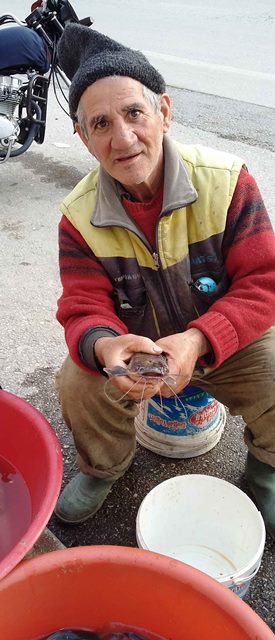 ‘Karabalık’, namı diğer ‘Bıyıklı Balık’, Antakya’da ‘sokak satıcıları’ eliyle alıcılarıyla buluşmaya devam ediyor. 63 yaşındaki Ali Çeker, lezzetiyle adından sıkça söz ettiren ve kimi sofraların baştacı olan karabalık için konuşurken, kaldırım üzerinde, su dolu 3 leğende satışını yaptığı ‘canlı’ balıklar için şunları söyledi: