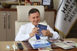 İskenderunlu Yazar Kaan Metin Çelik, son kitabını Büyükşehir Belediye Başkanı Lütfü Savaş’a hediye etti.
