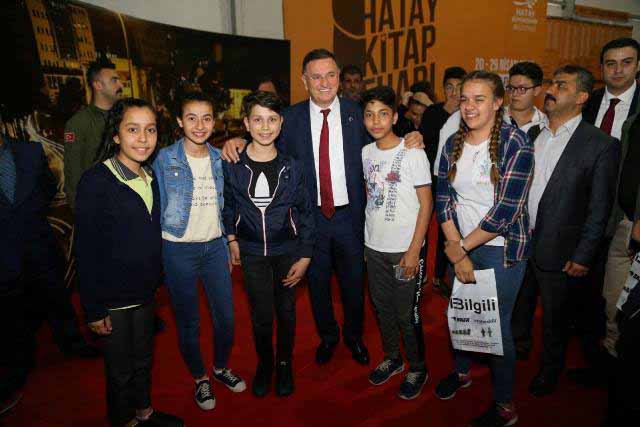 Açılıştan bu yana üç günü geride bırakan Kitap Fuarı ziyaretçi trafiğinde gençler ve çocuklar ağırlıklı yer alıyor. Hatay BŞB Başkanı Lütfü Savaş da, çocuklar ve gençlere özel ilgi göstererek, onların bu ilgisinden memnuniyetini belirtip onlara kitaplar hediye ederken, Fuar’ın onur konuğu olan ünlü Yazar Emre Kongar da Cuma ve Cumartesi günleri Büyükşehir Belediye Başkanı Lütfü Savaş’ın konuğu oldu. -Cemil Yıldız-