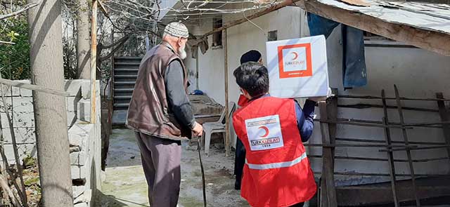 Antakya’da 4425 kişiye gıda kolisi, 1000 dezenfektan, 20.000 maske dağıtıldı.