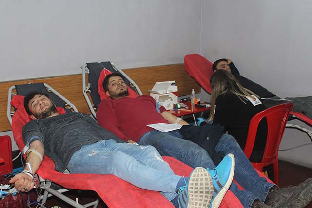 Hacı Mehmet Alkan, kan bağışında bulunan personeline teşekkür ederken, Kızılay’ın “Kan Bağışı Hayat Kurtarır” sözün hatırlattı. -Cemil Yıldız-