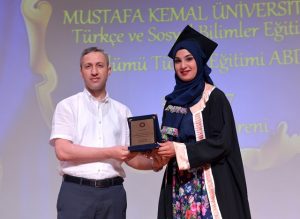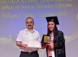 Mustafa Kemal Üniversitesi (MKÜ) Eğitim Fakültesi 2016-2017 eğitim öğretim yılı mezuniyet töreni, Rektör Prof. Dr. Hasan Kaya Rektör Yardımcıları Prof. Dr. Mehmet Kılınç, Prof. Dr. Yusuf Önlen, Prof. Dr. Veysel Eren, akademisyenler ve ailelerin yoğun katılımıyla Atatürk