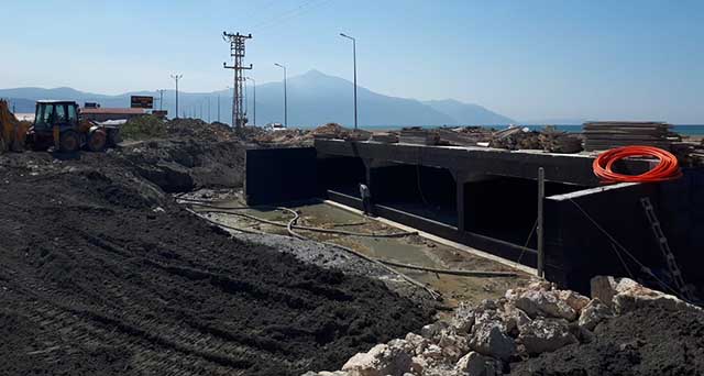 Hatay Büyükşehir Belediyesi tarafından, Samandağ ilçesinin deniz sahili kesiminde yapımına başlanan köprü inşaatı sürüyor.