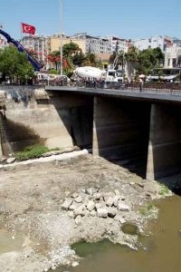 Hatay Büyükşehir Belediyesi tarafından, Asi Nehri’ndeki kirliliği ortadan kaldıracak proje bağlamında sürdürülen çalışmalar, eski Roma Köprüsü’nün olduğu yerde çıkan kesme taşların sessiz bekleyişlerine de sahne oluyor.