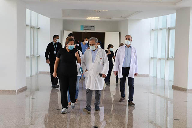 Başhekimimiz Dr. Mahmut Bayrakçıoğlu; Ameliyathane hasta transfer noktası, Ameliyathane iç alanı, Acil Servislerimiz, Yoğun Bakım Üniteleri, Yeni Doğan Yoğun Bakım, sağlık hizmeti sunulan alanlarda ve kovid-19 aşısı yapılan alanlarda halkımıza sunulan kaliteli sağlık hizmetlerini inceleyerek, saha değerlendirmelerinde bulundu.