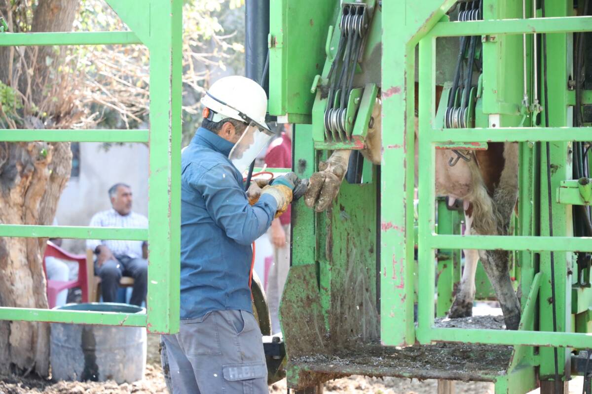 Hatay Büyükşehir Belediyesi (HBB), kırsalda üretimi desteklemeye yönelik çalışmalarını sürdürüyor. Tarımsal Hizmetler Dairesi Başkanlığı, 15 ilçede faaliyet gösteren küçük ölçekli üreticilere büyükbaş hayvanlar için ücretsiz tırnak bakım hizmeti sunuyor. Alanında uzman ekiplerle birlikte 2 mobil araçla yürütülen hizmet, üreticinin yükünü hafifletirken hayvan refahını da artırıyor.