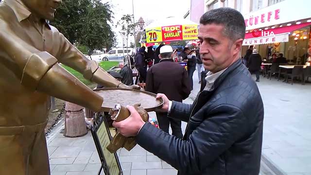 Nisan 2018 tarihinde tepsisi çalınan Künefeci Heykeli’nin kolları da Ocak 2019’da kolları kırıldı. Tepsisi çalındıktan sonra fenomen haline gelen, fotoğraf çektirmek isteyenlerin ilgi odağı haline gelen Künefeci Heykeli bu defa kökten kaldırıldı.