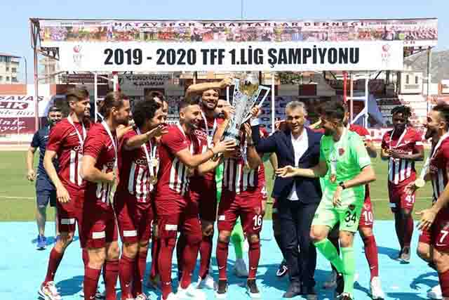 Türkiye Futbol Federasyonu (TFF) 1. Türkiye Ligi 2019-2020 sezonu şampiyonluk kupası sahibini buldu. TFF Başkanı ve Yöneticileri, dün sabah Hatay’a geldi ve öğleden sonra Antakya Atatürk Stadı’ndaki törenle şampiyonluk kupasını Hatayspor Kaptanı Mesut’a teslim etti. Törene; Milletvekilleri, Büyükşehir Belediye Başkanı Lütfü Savaş, Bordo-Beyazlı yöneticiler, futbolcular ve teknik heyet katıldı. -Cemil Yıldız-