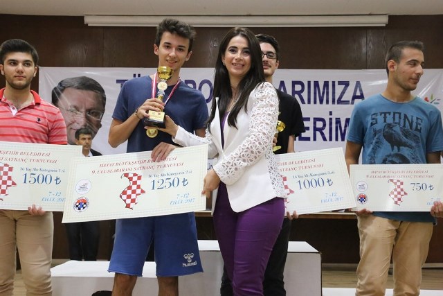 CHP’li Hatay Büyükşehir Belediyesi ev sahipliğinde düzenlenen, 9. Satranç Turnuvası finalleri ve ödül töreni önceki gün gerçekleşti. 18 İlden yaklaşık 200 sporcunun açık ve 16 yaş ve altı kategorileri olmak üzere iki ayrı kategori de yarıştığı Turnuva’da, sporcular, 12 Eylül Salı günü HATMEK’te düzenlenen törende ödüllerini aldı.