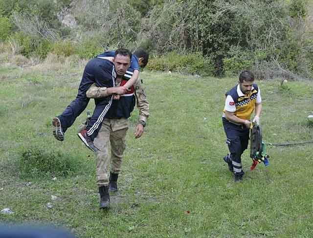 Payas’ta, Amanos eteklerindeki bir derede yüzen 4 çocuktan 2’si akıntıya kapıldı, kayalıklara vurdu, ayakları kırıldı, mahsur kaldı. Çocuklar, Jandarma ve itfaiye tarafından kurtarıldı.