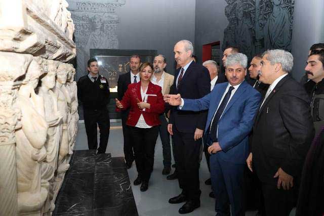 Buradaki eserleri tek tek inceleyen eski Bakan Numan Kurtulmuş ve beraberindeki heyet; Antakya Lahti, Kral Şuppiluliuma, antik döneme ait mozaikler, üç ağızlı mağara ve sergilenen diğer eserler hakkında Müze Müdürü Nalan Yastı’dan bilgi aldı. Kurtulmuş ve beraberindeki heyet, daha sonra, Kırıkhan ilçesinde bulunan Beyazid-i Bestami Türbesi’ni ziyaret etti. -Cemil Yıldız-
